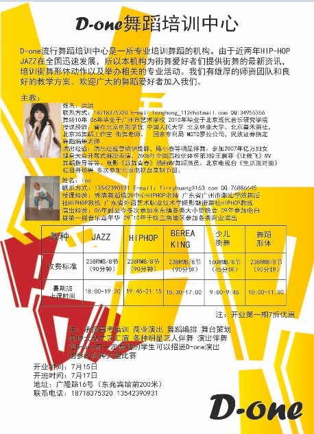Soul*lulu 博士后 注册 2005-02-27 消息 1,612 反馈评分 0 点数 61 年龄 37 2010-07-16 #1 D1舞蹈培训中心正式开张!现正接受报名。报名热线18718375320 附件 QQ截图未命名.png 279.8 KB · 查看: 670 未命名.jpg 112.7 KB · 查看: 681
