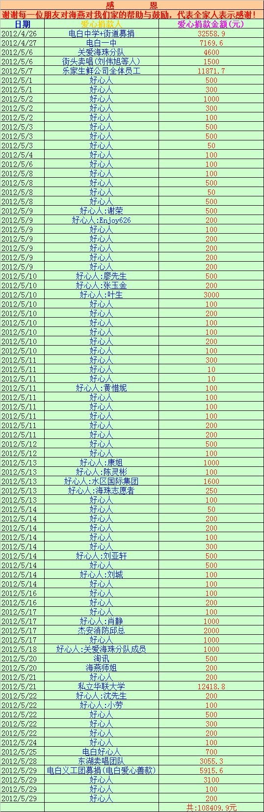 水 水东吴海波 小学二年级 注册 2012-05-04 消息 180 反馈评分 0 点数 0 2012-06-05 #163 社会爱心捐款明细如下,谢谢,感激,感恩... [attachmentid=295878] 附件 未命名.jpg 363.3 KB · 查看: 510