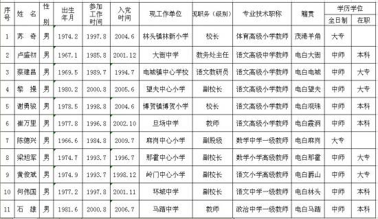 电白县2012年竞争性选拔镇级中心小学校长能力测试评卷工作已经结束,现将能力测试成绩予以公布