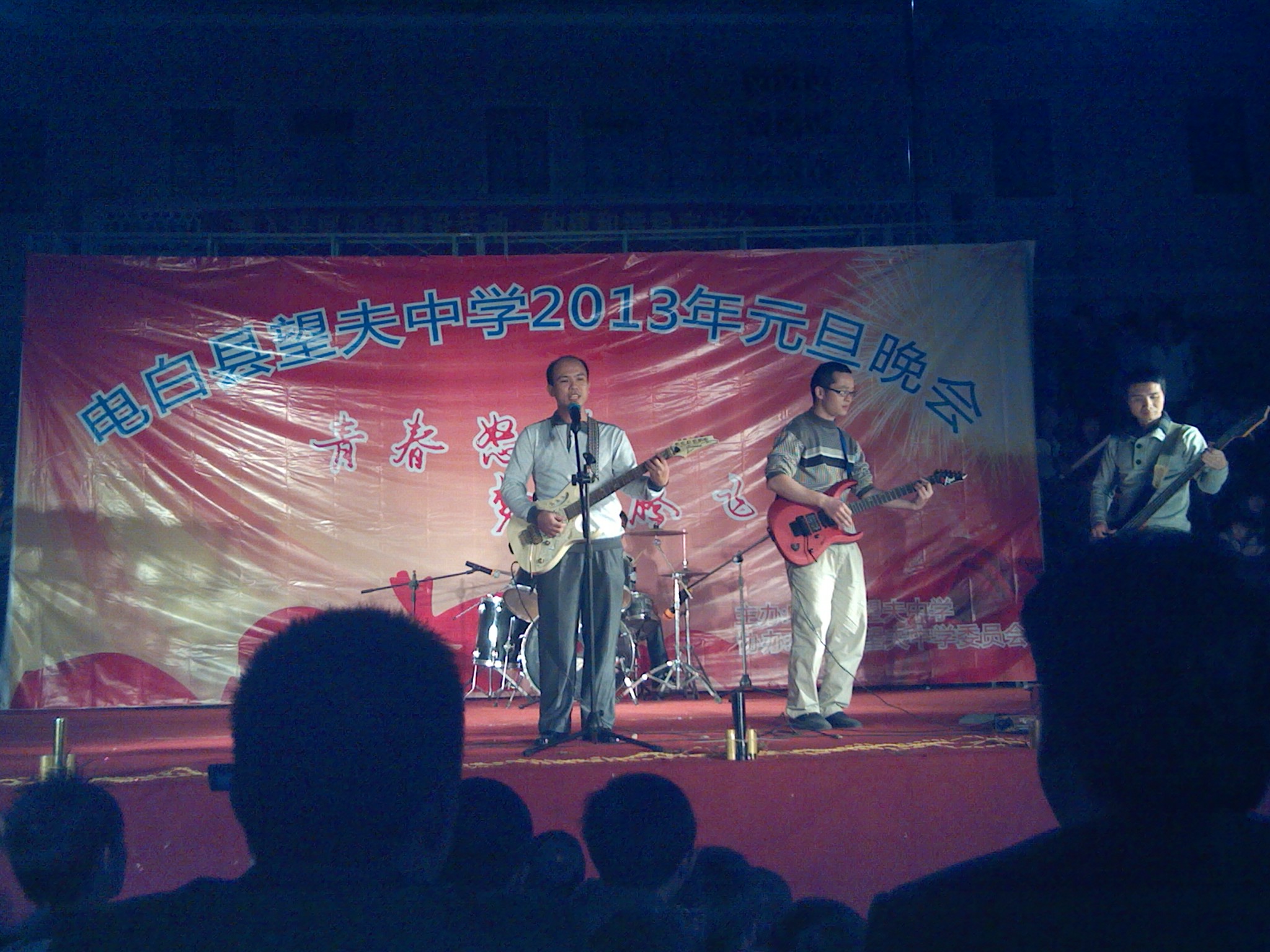 今天晚上,望夫中学元旦晚会精彩上演。 晚上7:30,晚会即将开始。望夫镇党委书记,镇长及望夫中学校长作了讲话。8:00,晚会正式开始。晚会的精彩吸引了附近群众几千人前来观看,使整个中学操场人山人海。晚会的成功也从一个侧面体现了望夫中学素质教育的成功。
