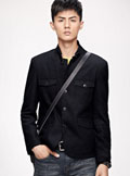 原创撞色散边两用领呢料西装 蓝色269元
