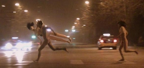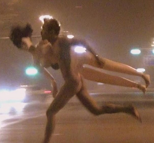 4月1日凌晨,有网友爆料在北京望京街头发现一对裸奔男女,一名男子全裸夹着充气娃娃狂奔,身后跟着一名身材姣好的长发裸女,两人一路狂奔,在深夜的街道跑啊跑啊……