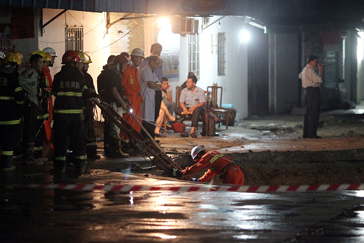 深圳工业园突发地陷 目击者称4至5人被埋