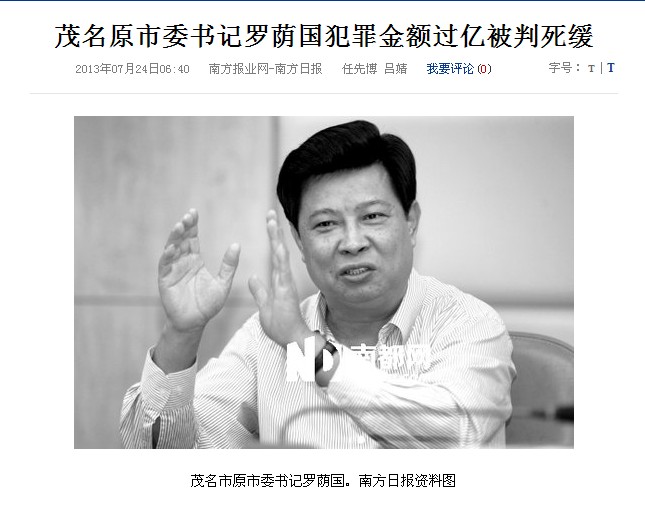 去年4月,广东省纪委通报称,茂名市系列腐败案2009年以来,省纪委成功查处了茂名市委原书记罗荫国严重受贿案,市委原常委、常务副市长杨光亮严重受贿案,市委原常委、市政法委书记、公安局长倪俊雄受贿案,市人大常委会原副主任朱育英受贿案,原副市长陈亚春受贿案,电白县委原书记李日添受贿案等系列腐败案。全案共涉及省管干部24人、县处级干部218人,其中立案查处61人,属省管干部19人、县处级以下干部42人,移送司法机关依法处理20人,为国家挽回直接经济损失3.2亿元。
