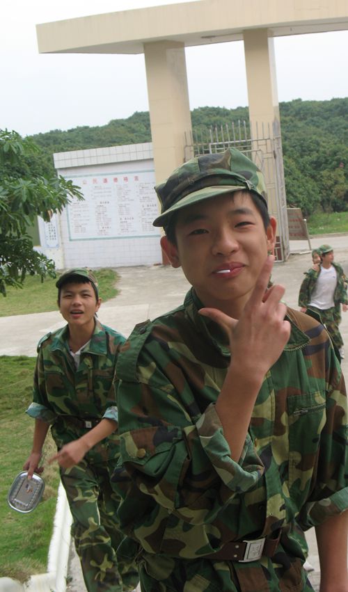 第一天开幕后,就有十几个同学围着我就说要回去。老师看到你们的辛苦了,头发已经湿透贴在额头上,脸晒得红红的,汗水也在直流,衫也湿到了衫尾,知道你们还从没受过这种苦。我说,想想爹爹妈妈现在也在海上打鱼、在农田上耕种容易吗?想想我们解放军叔叔为保卫国家日夜训练,与他们的辛苦相比,你们这点苦算得了什么?你们还真懂事,低头不语,又高高兴兴投入训练。
