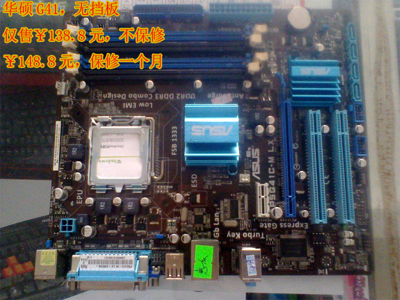 新回到一批主板 1、华硕G41主板 8块 2、联想G41主板 5块 3、技嘉G41 2块 4、技嘉G31 4块 5、技嘉945G 2块 6、昂达G41 6块 7、昂达G41 5块 8、昂达945G 2块 9、联想精英754带2800+ 10块 10、845芯片组若干快 店地址:电白县陈村镇陈村大道入10米处 电话:136 8670 1622 建议各位坛友到本店选购,或者采用淘宝方式进行购买 网店地址:http://huizhongdiannaokeji.taobao.com/