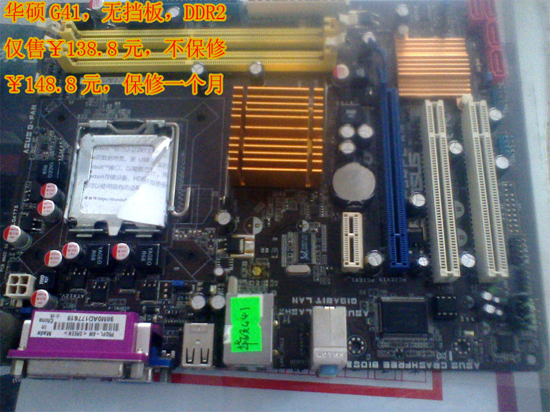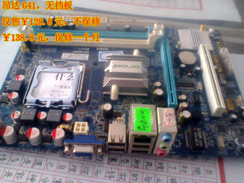 有些朋友在电话里订下了主板,但是由于淘宝,或者同行提货导致某个型号缺,在此表示很抱歉,我会尽量更新数量型号数据,以供参考 1、华硕G41主板 5块 2、联想G41主板 3块 3、技嘉G41 1块 4、技嘉G31 2块 5、技嘉945G 2块 6、昂达G41 4块 8、昂达945G 2块