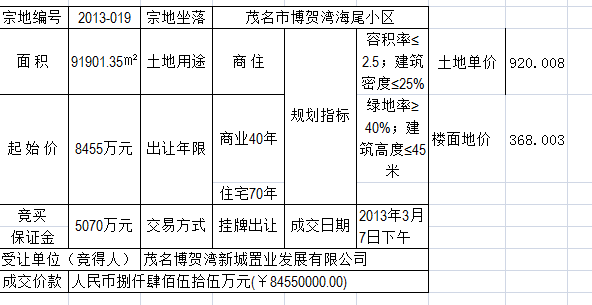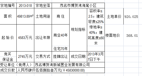 先看一下土地多少钱,我找了2013年电城出让的国有土地作案例参考,来源于茂名国土局网站(案例图请看附件)