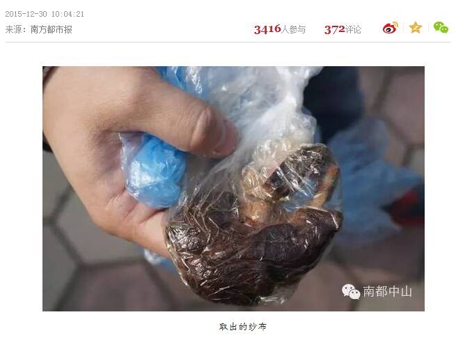 今日下午,南都记者在博爱医院门口见到了江先生。江先生告诉南都记者,自己的妻子小朋在出院后的第二天(12月2日)竟然发现阴道内有一块纱布。这一情况的出现,顿时让江先生一家慌了手脚,"怎么会发生这样的事情,会不会对我妻子造成身体伤害?"