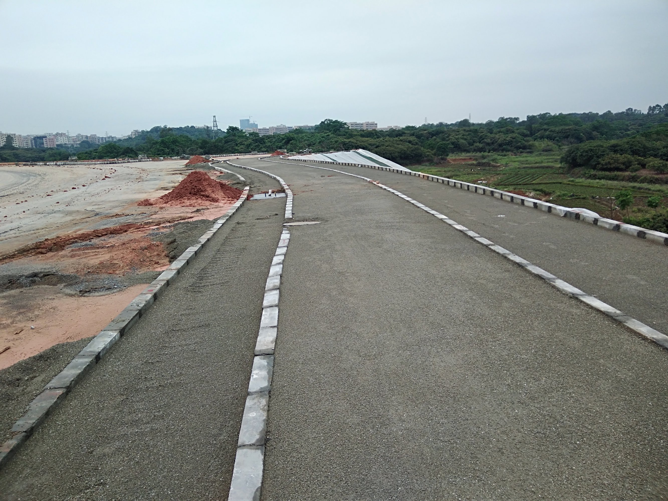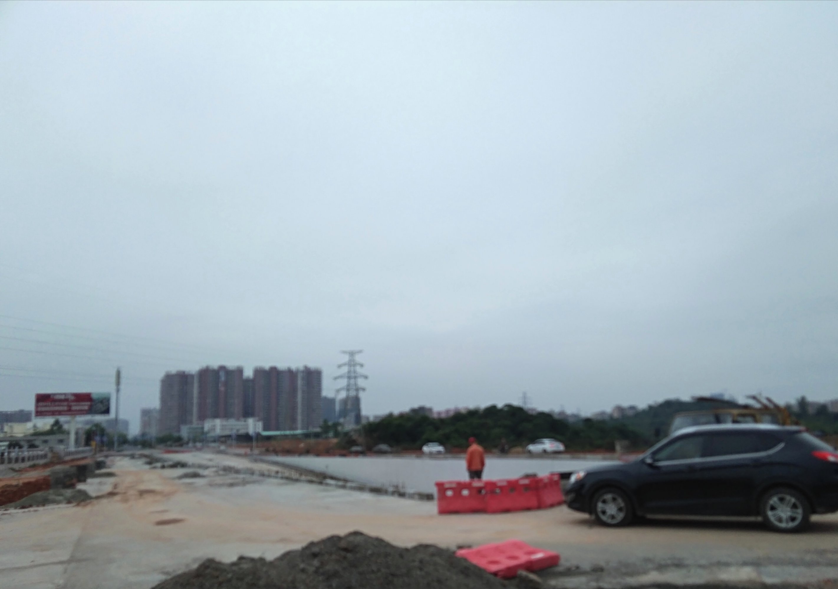 昨晚今天下了一场大雨,现在还天阴阴,偶有小中雨,又有x过那附近,顺吸吸,只拟见有零零星星施工人员在走动,大型机械只在那躺着(或许是下雨天气造成吧?),而整体暂没见有何变化(或许也要定程序时间吧?),或不停工就好,或客观点说有点变化的是在铺设便道~
