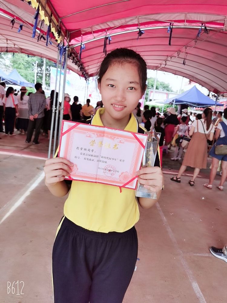 我们学校六年级的赖紫欣同学被授予电白区“新时代好少年”荣誉称号。