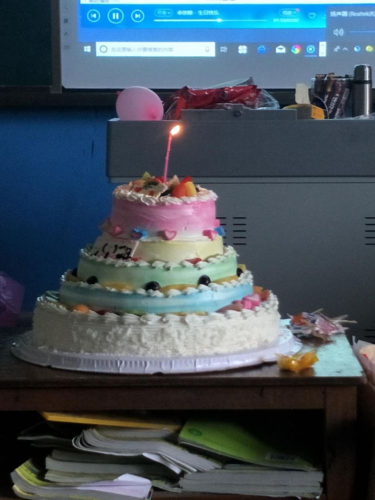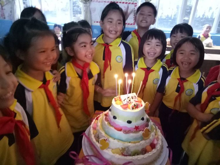 看我们围着蛋糕笑得多甜蜜。