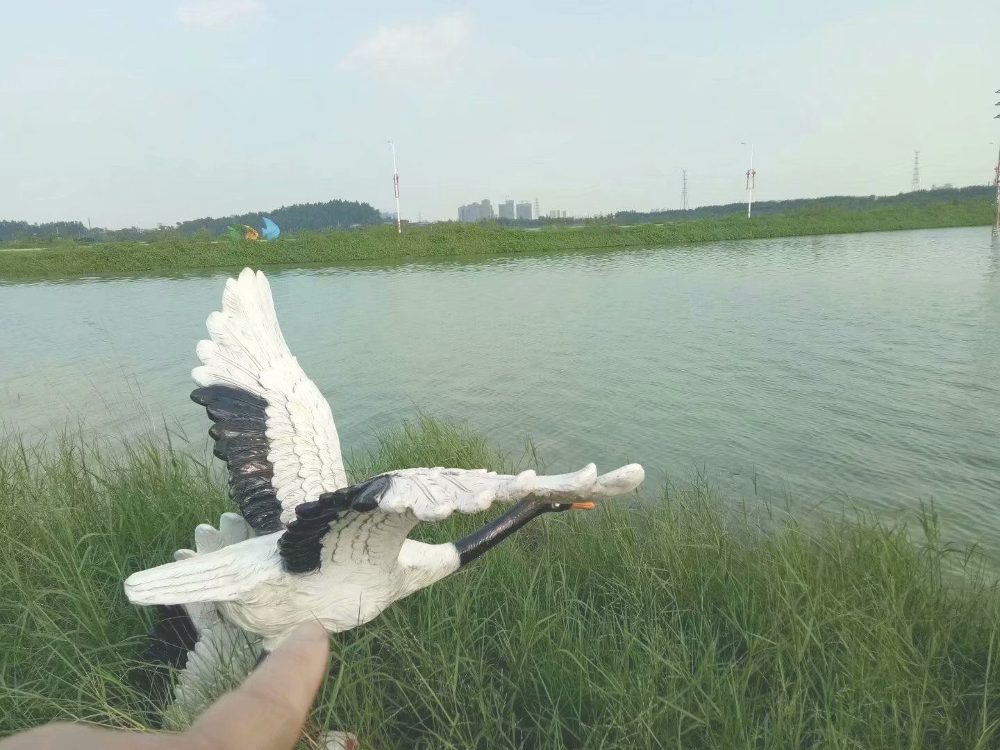 矿湖边一只人造天鹅,造型十分生动,我留意观察这片较小的水域,只见过一只白鹤,在旦场河湾水库库尾白鹤多,可能矿湖的鱼虾极少,或者白鹤不喜欢到此找吃的。