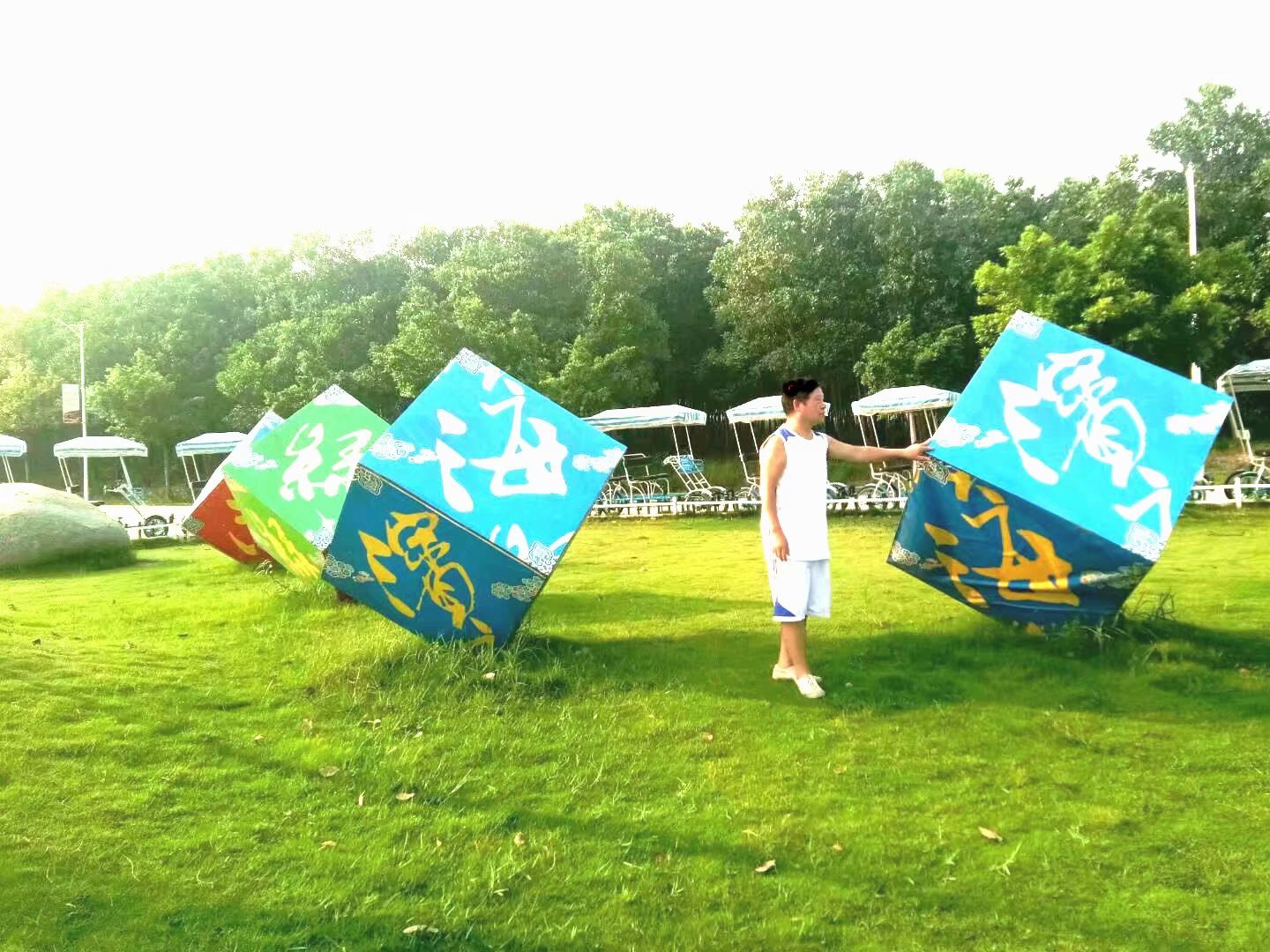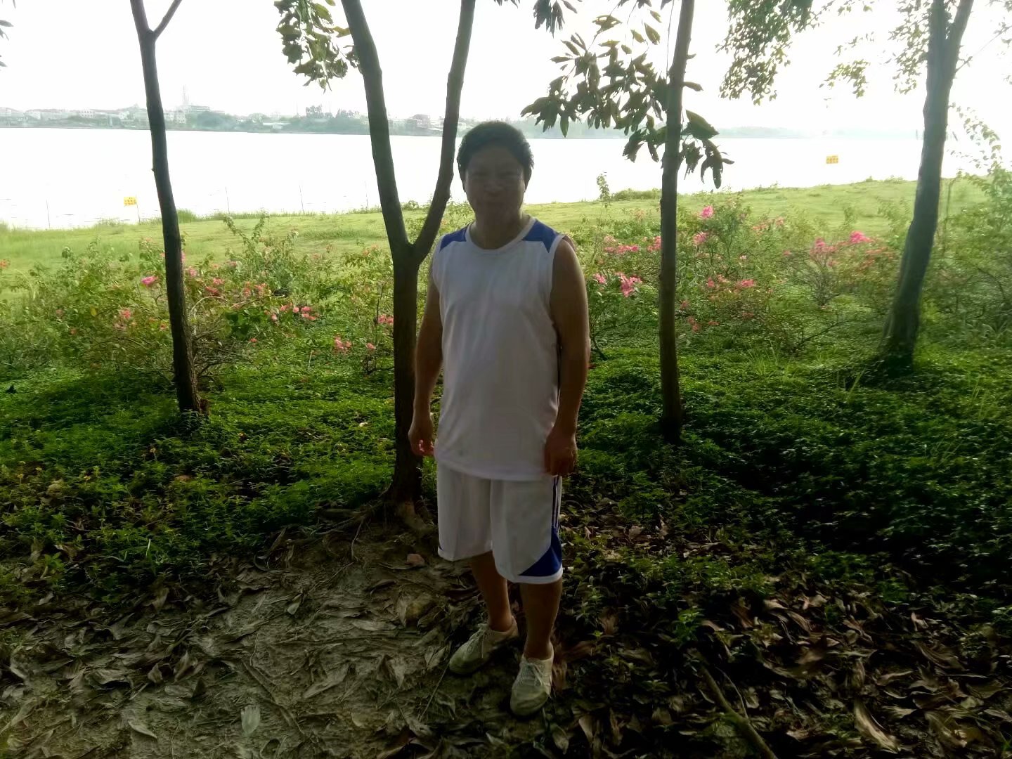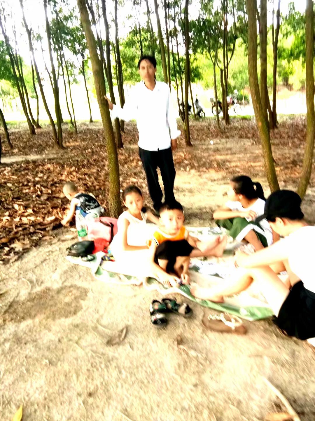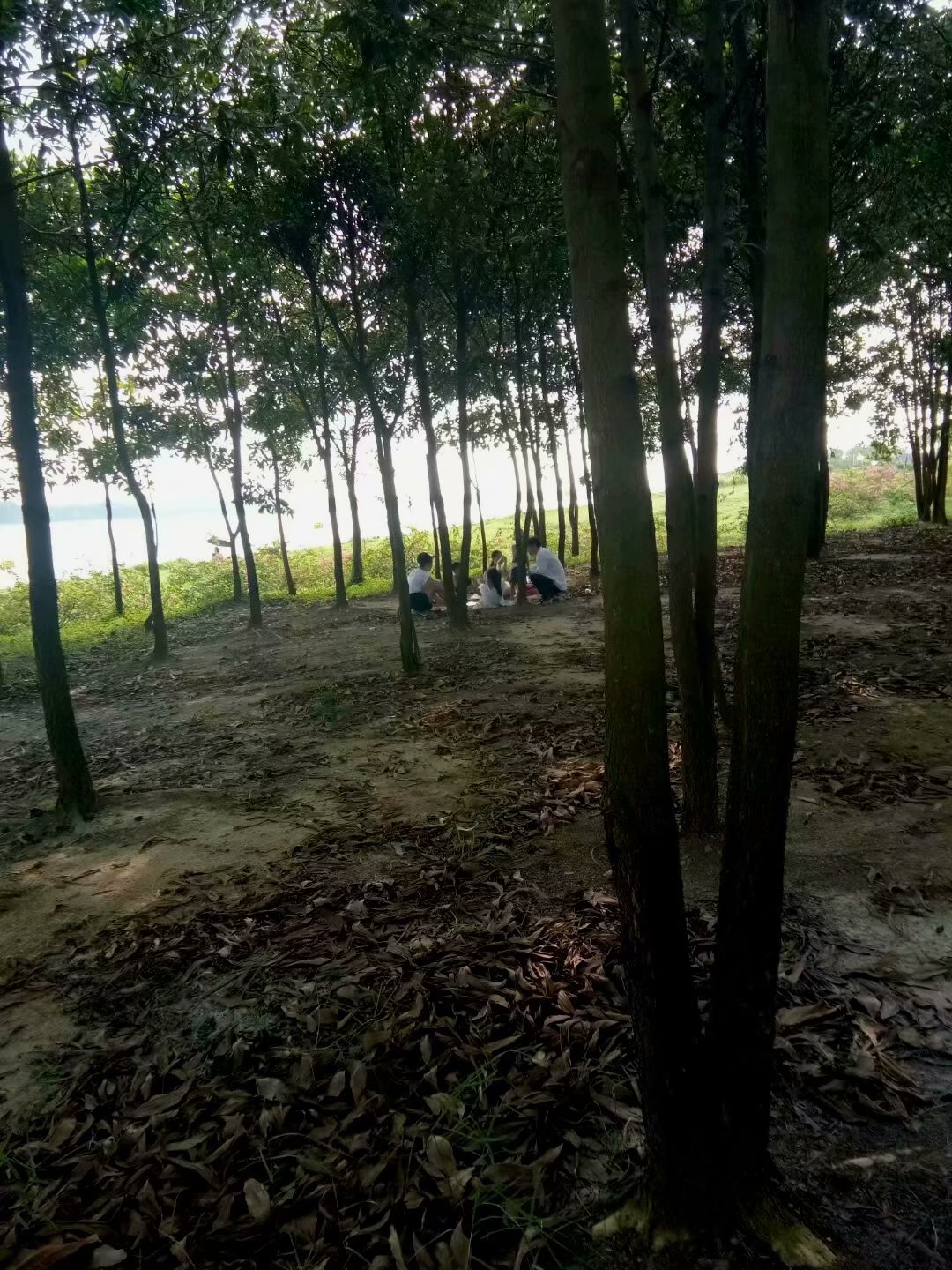 这片绿林临近矿湖水面,清风徐来,也是这一家四口乐也融融的地方。照片是孩子们的父亲帮我拍的。