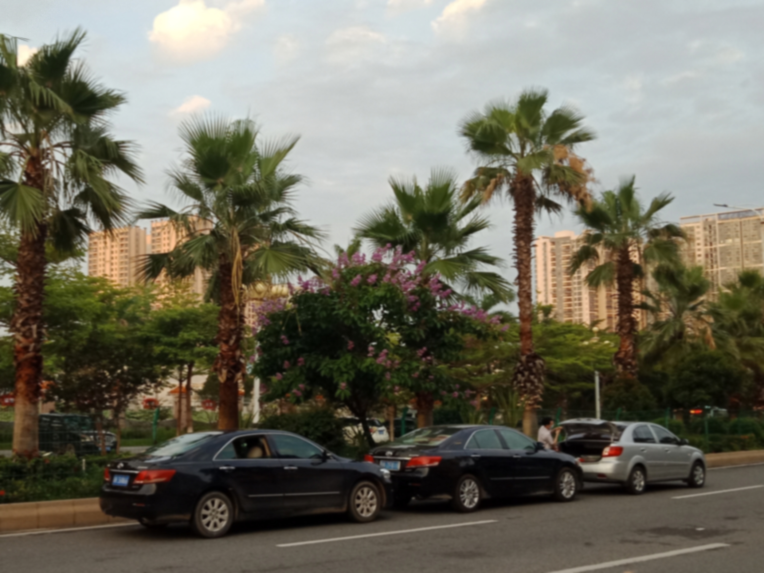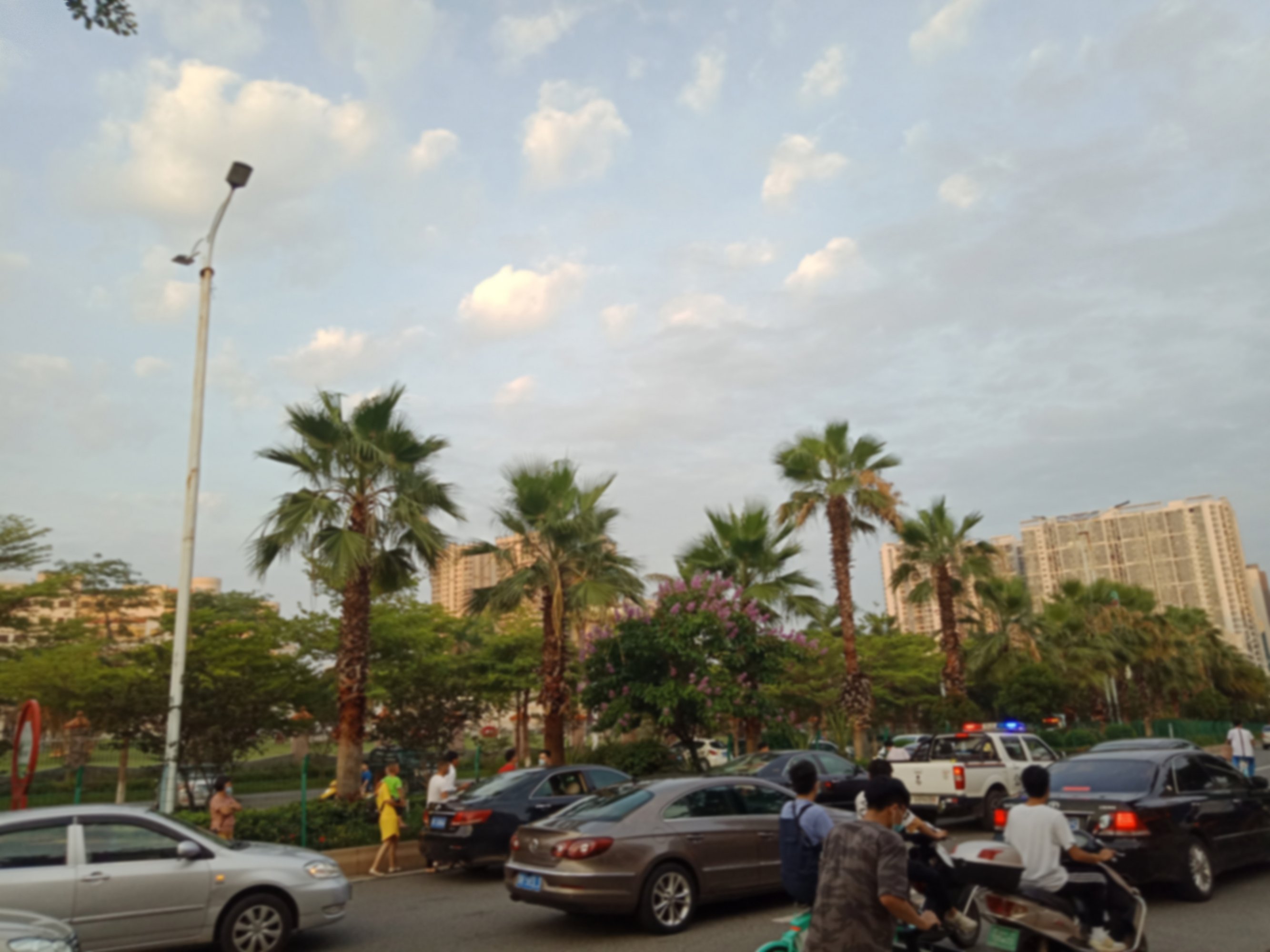 迎宾路车流挺多,且那位置又遇弯道下斜坡,见那几辆车的车头车尾已凹陷下去,