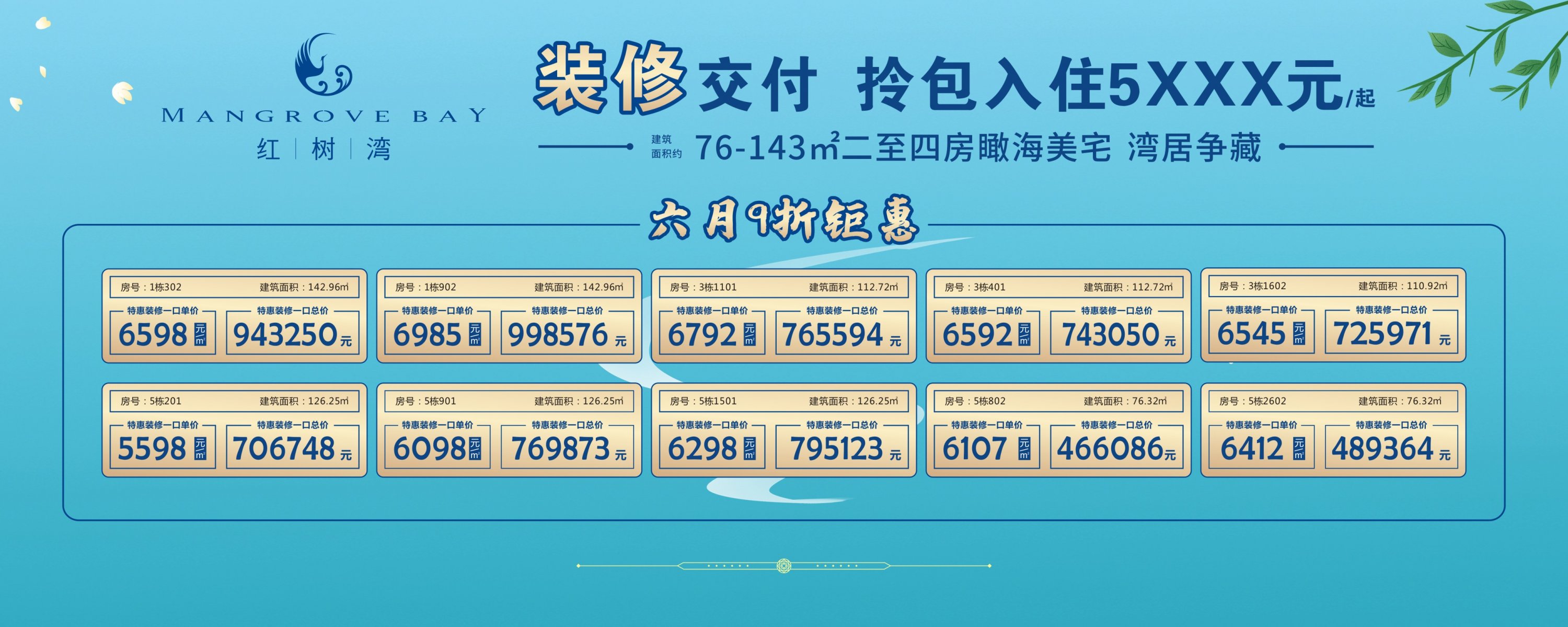 疯狂6月全场9折抢购精装房,一线海景房红树湾火爆热销中