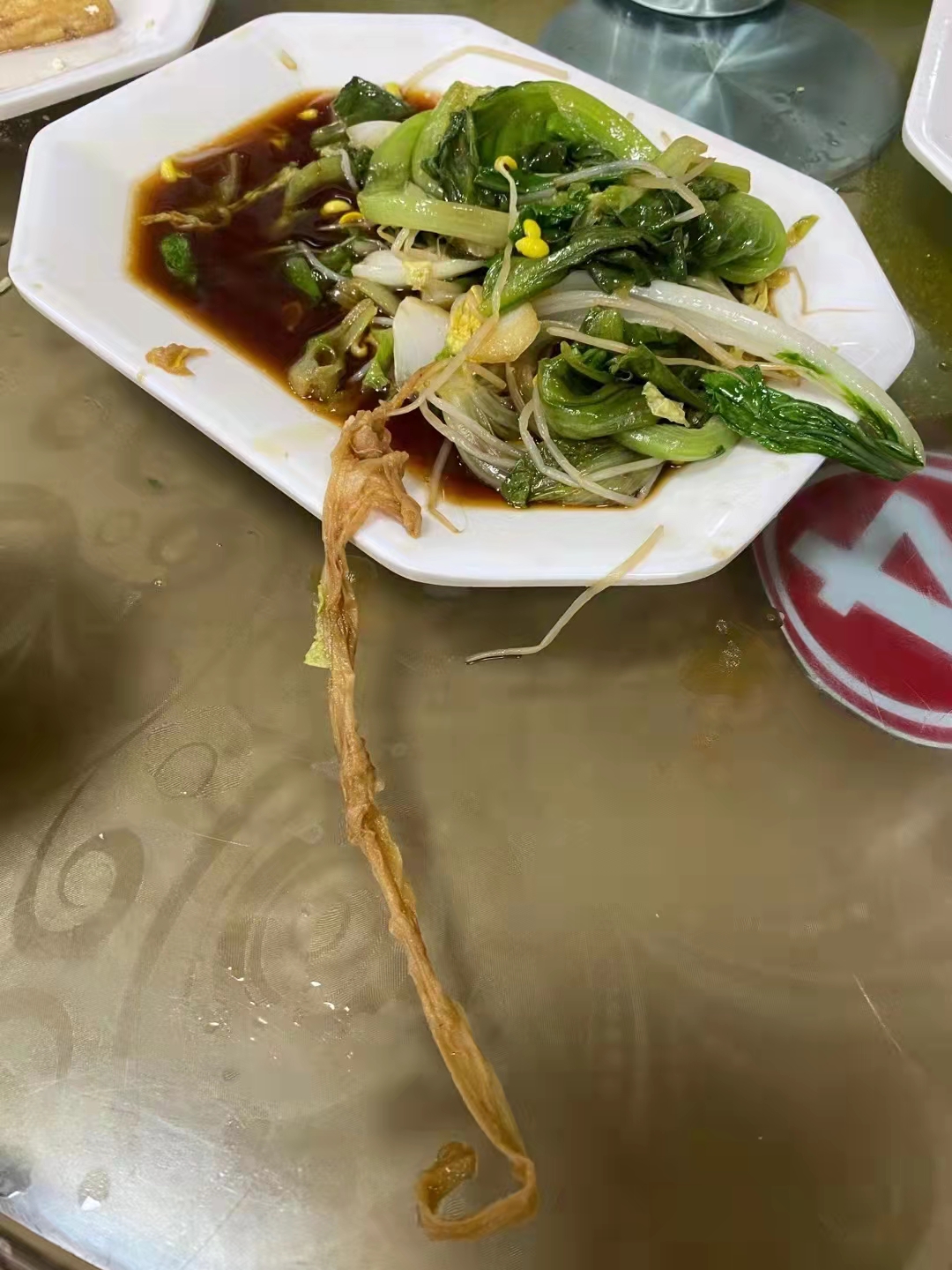 时间:2022年4月1日 地点:那楼转盘摩玲鸭粥店 我们在该店吃鸭粥,点的烫菜竟然混着一条长长的纸巾,由此看出该店用了回收上一桌客人的剩菜,厨房没仔细清理干净上一桌客人丢弃的纸巾就混入下一桌客人点的菜里,老板竟然谎称是抽风机的问题!?我们吐了几个晚上,越想越恶心! 这种黑心店,有人去查吗??