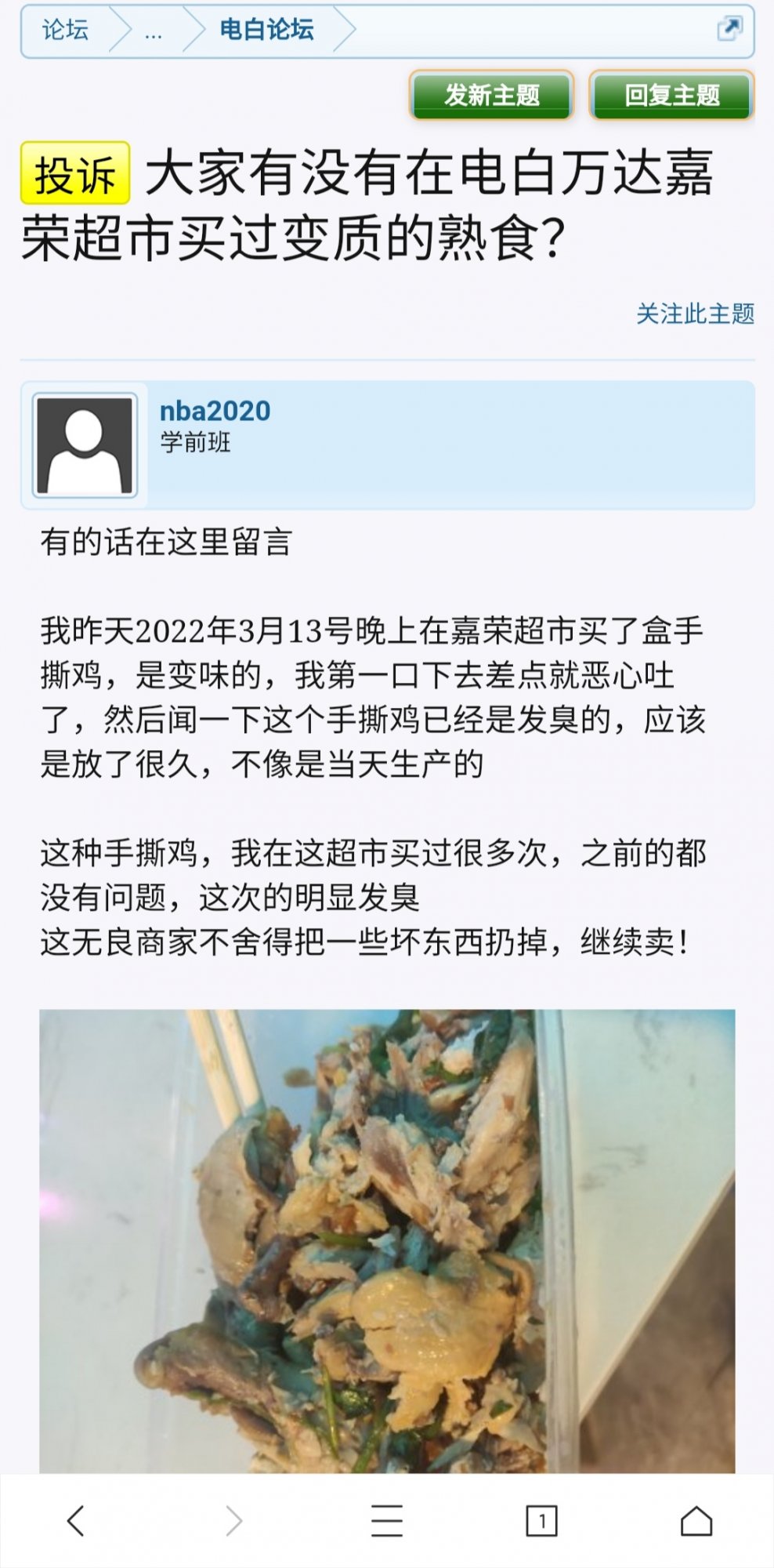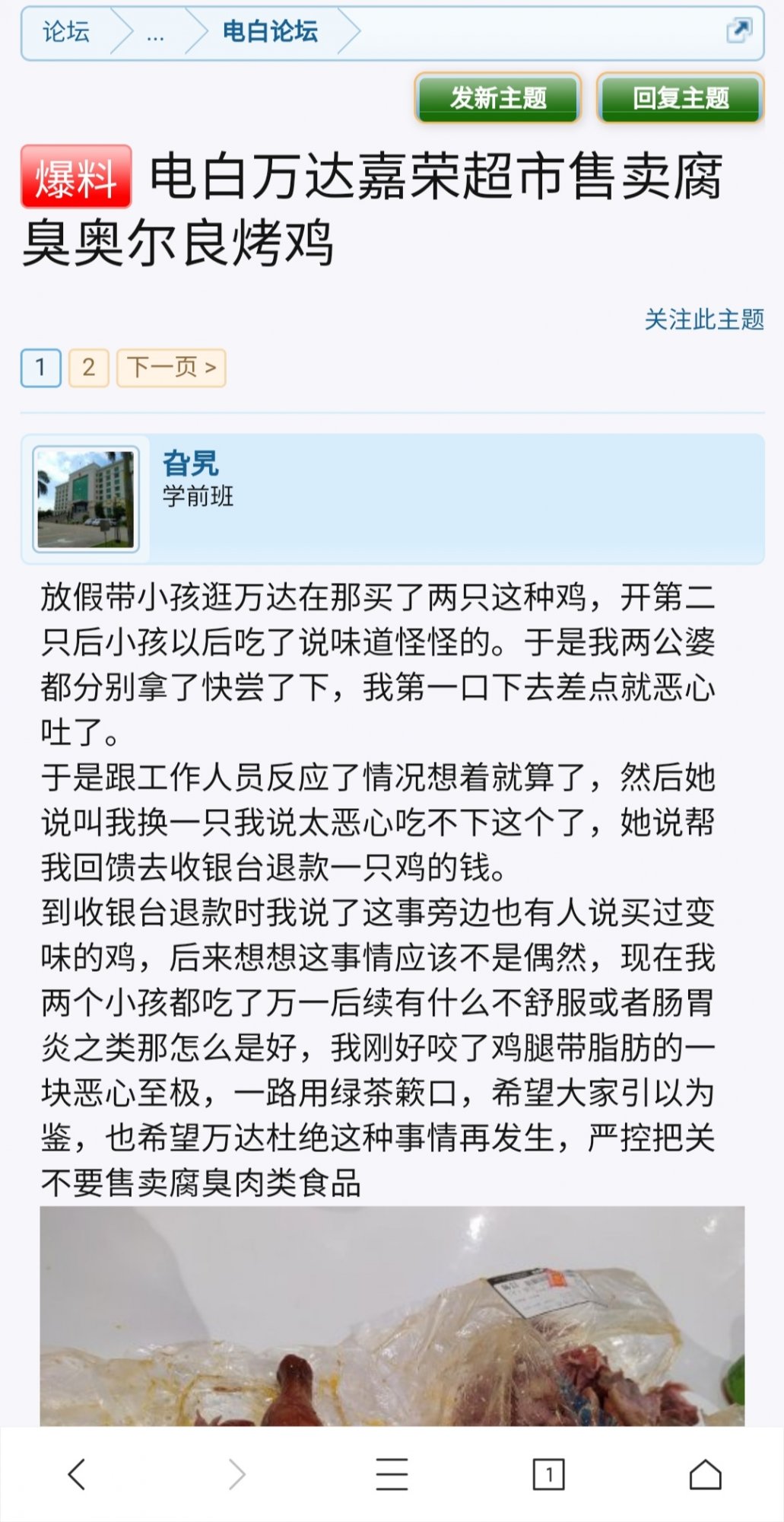 窃·格瓦拉 说: 这些问题市场质量监督局领导最会写,好比之前几位坛友在万达嘉荣超市买到变质鸡投诉到12315,结果给某单位回访指责投诉人上升到政治高度,再也没人敢投诉电白食品安全了。 点击展开... 怎么是政治高度呢?上了电白论坛就是政治事件吗?