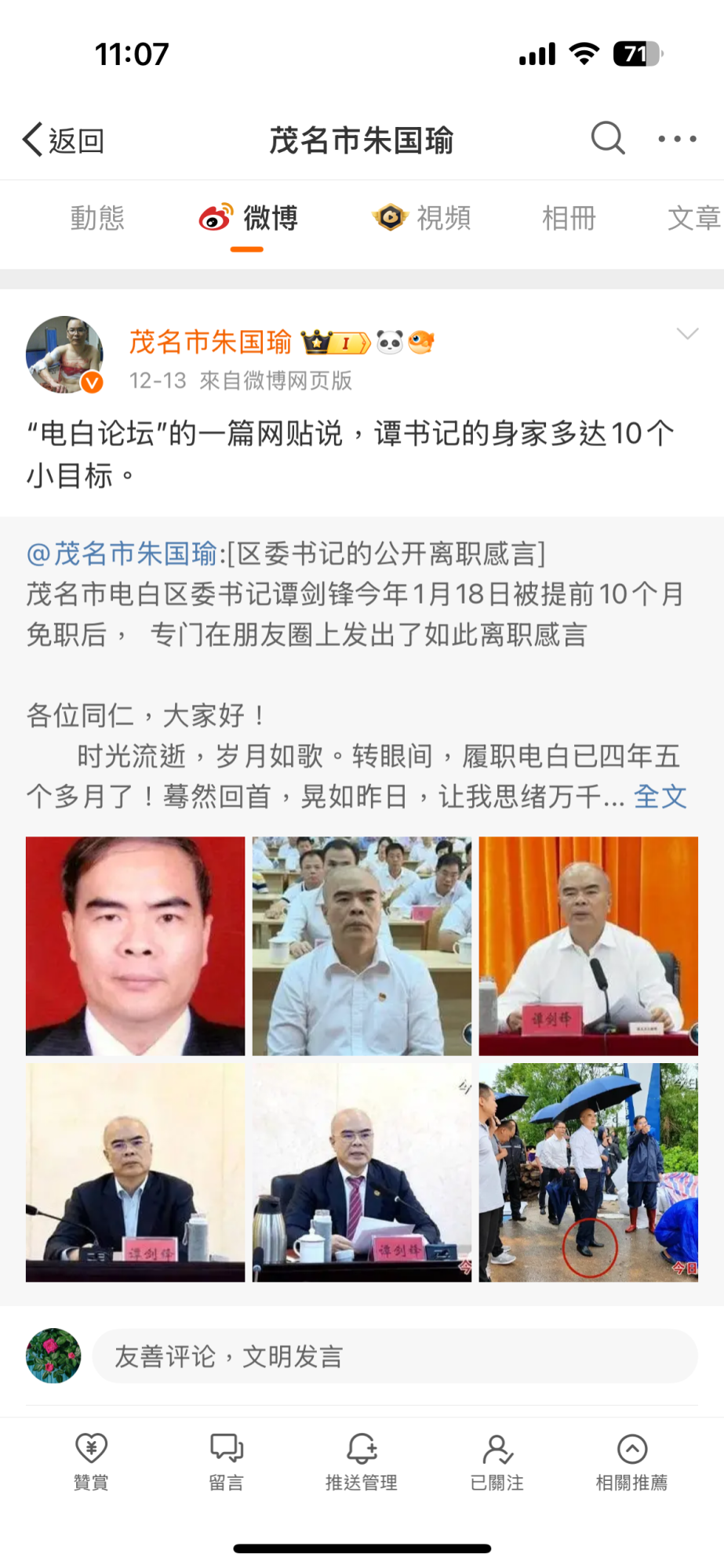 前段时间论坛如一潭死水,没啥劲料,此贴一出,吹皱了一湖水,震动了电白官场。