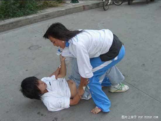 4.侮辱人格,这招其实是最狠的,一个女人宁愿被别人打的头破血流也不愿意被强迫当着众人暴露私处(当然那些自愿的行为艺术及人体艺术不在其列),无论社会如何开放这一点是永远不会改变的,被打的连内衣都被剥掉的女人可是说是被完全对手击败了。
