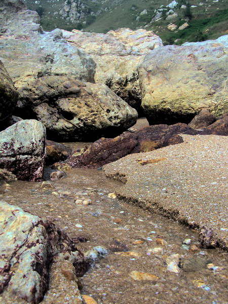 大家若在海边的石头上玩,千万要注意那些贝壳类物质,光着脚很容易被割到的,我就中招了,后来穿鞋了,又滑一次,在拍的时候,没留意,居然被一个浪盖了半身,幸好相机没事!