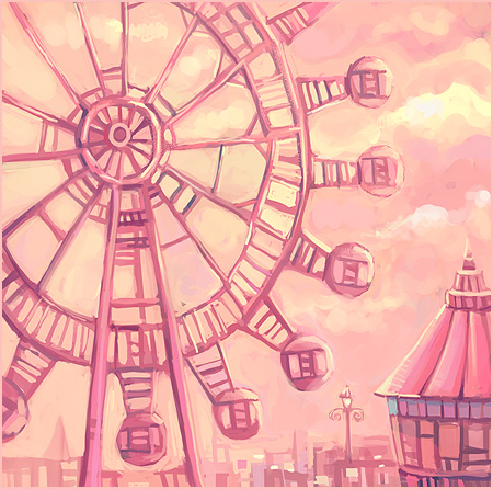 从前,在一个森林里有一座幸福摩天轮。相传只要和你心爱的爸爸、妈妈、知己或者恋人坐上去以后就会被幸福的光芒笼罩着,但是这道给人带来幸福的光芒是无法用肉眼去看的,只能够用新去体会。 不幸的一个小孩,名叫开心。他的爸爸妈妈早已逝世,年纪小小的他没有生存技巧,靠的只不过是到处流浪当乞丐讨回来的钱生活。 有一次,他就流浪到一个叫幸福的城市,并且听说在森林里的幸福摩天轮的传说,于是他便好奇地走进了森林。他站在幸福摩天轮前看着摩天轮里的人脸上的笑容,有的只是羡慕。虽然传说里说要幸福就只能跟心爱的人坐在摩天轮里,但是开心他还是想到摩天轮里坐一坐。他自个儿地坐在摩天轮里,觉得自己孤零零的真的很不幸,只得看着别人一脸的幸福。 ――这时,他看见坐在自己前面的厢里的是一个大约15岁的小伙子和父母。爸爸紧紧地搂着孩子跟妻子,而妈妈用她那温暖的手抚摸着孩子,三人都从心底里发出了灿烂的笑。而他现在想起的是他那亲爱的爸爸妈妈,回忆起父母逝世前的欢乐时光还有点伤感。于是,他省得自己不开心,所以就转过身来看看后面的厢。而他看到的是一对好朋友有说有笑的,聊得可高兴了,有时候笑声还传到他那里去。 看到这情景,他更感觉到自己是那样的孤立无援。一滴委屈的泪水就这样从伤心的眼睛流了下来,滴在自己肮脏的手上。然而,当他再次抬起头来的时候,竟然惊奇地发现他过世的父母坐在自己面前。看着这奇迹,他更是开心得哭了。这个时候的他流的是幸福的泪水,同时也感觉到自己是那样的幸福,仿佛真的感到有一道幸福的光芒笼罩着,心里似乎翻起了波涛大浪,根本无法平静下来。就当他想要投进妈妈的怀抱时,双亲却又惊奇地消失了。但是,父母的无影无踪并没有令他的心情从高潮一下子跌入万丈深渊,反而使他更加的幸福,因为他之前的幻想除了让他觉得自己无比幸福外,现在他还真正领略到这个幸福摩天轮的含义了。 其实,这个幸福摩天轮并不是有莫大的能量能够令所有人感到幸福,真正幸福是在于你跟什么人坐在幸福摩天轮里。只要只有你跟你心爱的人坐在幸福摩天轮里,那么整个空间似乎就只属于你们,没有人干扰,可以尽情地享受着这种感觉,尽情第对对方说出心里话,这难道不是幸福的时光吗? 自此以后,开心决定不再流浪了,他要在这个城市定居下来,因为有幸福摩天轮和爸爸妈妈陪着他,他再也不觉得孤独了,而是那样的幸福,他知道爸爸妈妈没有离开,他们永远都活在自己心中。