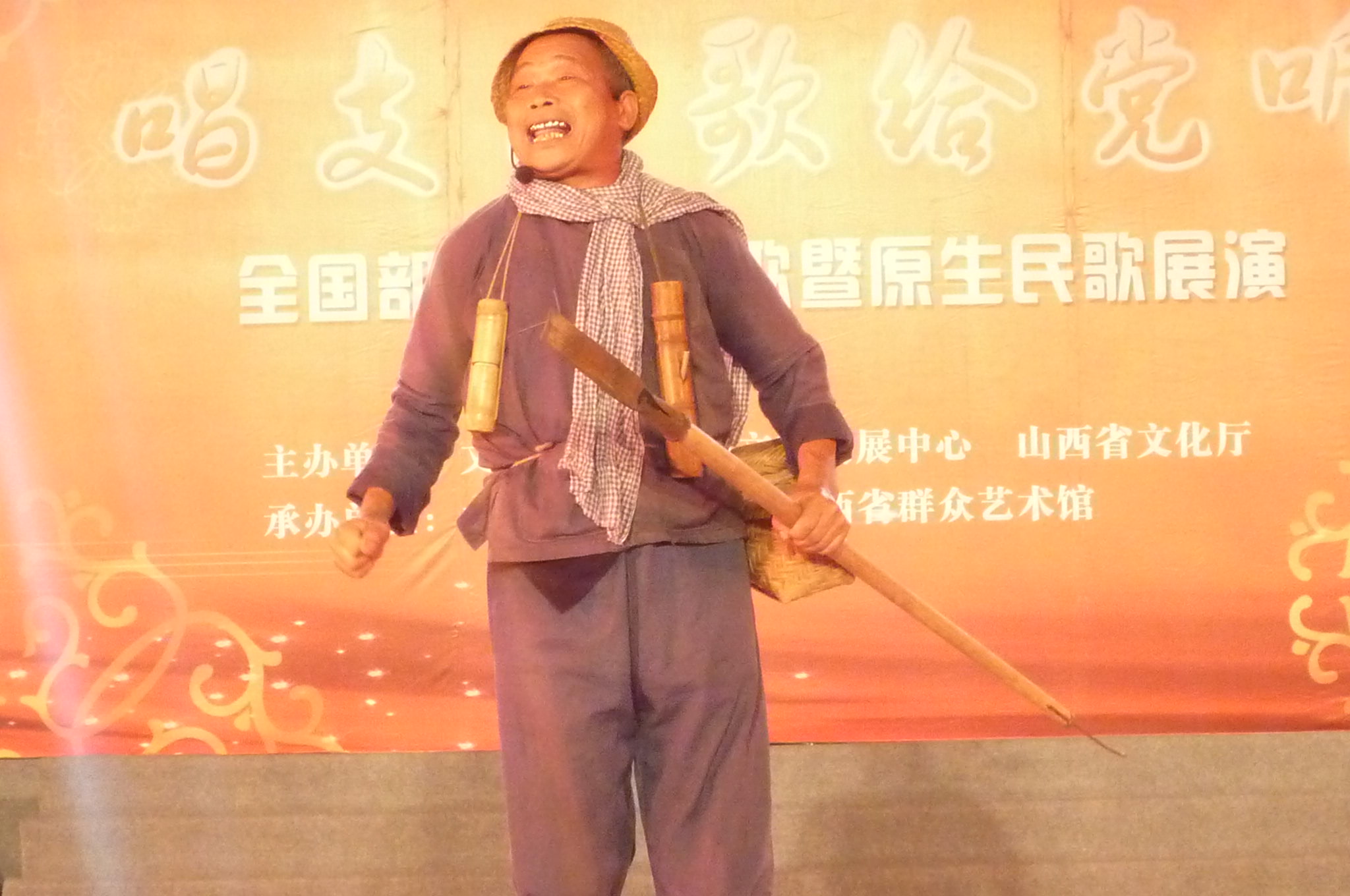 时间仓促,仅几天准备,9月4号晚9时,我们在太原下机,入住东大酒店。隔壁几间房住的是重庆队,暄寒几句后,在接触中不知不觉,我们混熟了。重庆队共有7人,其中一位是领队,他们是清一色的老板组队,民间艺术是他们的爱好,他们此次展演的节目是西南出名的《川江号子》,而我们广东队仅有3人,相比,我们单调点。但重庆队对我们丝毫不缺热情,与我们兄弟相称,对我们百般关照,特别是对我们演员王业佳老爷子更是千般呵护。在13――16号塑州彩排演出期间,老爷子听说能同郭兰英、腾格尔等歌星同台演出,高兴得夜不盖被,结果患了重感冒。这时,重庆队上上下下对老爷子悉心照顾,无微不至关怀。罗领队彩排时照场;袁亮身前身后收拾道具・・・・・・