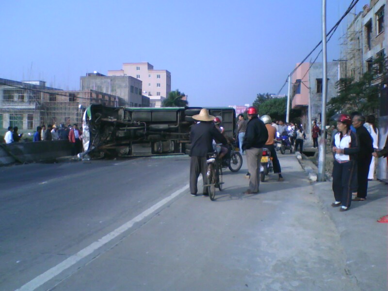 今天九点,树仔路段中巴发生车祸