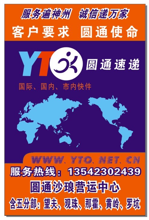 九年来,圆通立足国内,面向国际,致力于开拓和发展国际、国内快递、物流市场。公司主营50KG以内小包裹快递,形成了包括同城当天件、区域当天件、跨省时效件和航空次晨达、航空次日下午达和到付、代收货款、签单返还等多种增值服务产品。服务涵盖仓储、配送及特种运输等一系列的专业速递服务,并为客户量身制定速递方案,提供个性化、一站式的服务。