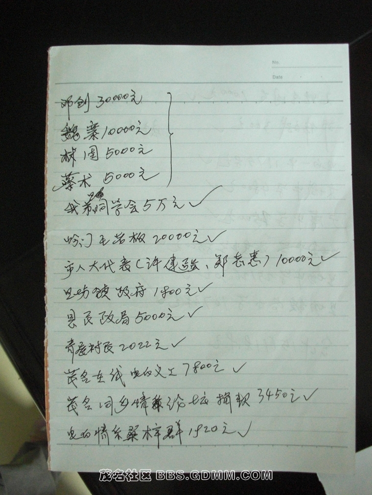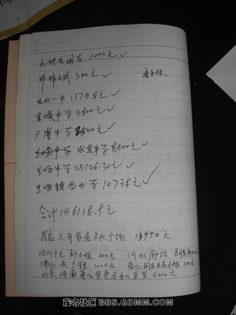 蔡燕梅爸爸对于每笔善款的捐赠,都细心地用本子做了详细的记录,同时他托付我们对外做一个公布,让我们转达他对所有捐助人感谢!祝福大家!