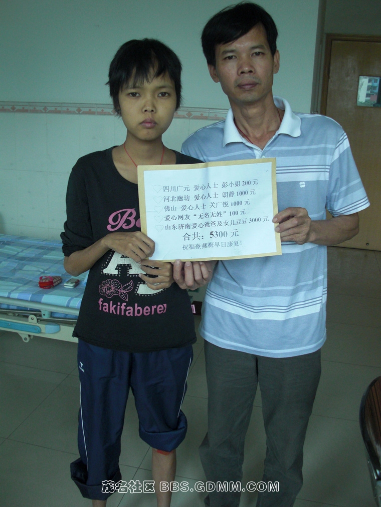 PS:另外我们于此呼吁:如在广州有空闲房子的同乡,能否提供一间房出来,因燕梅在手术后大概一个月的时间,还需在广州每个星期回去医院一趟做复诊。为节省费用的开支,我们特此向广大在广州的老乡征集。在此先行表示感谢!