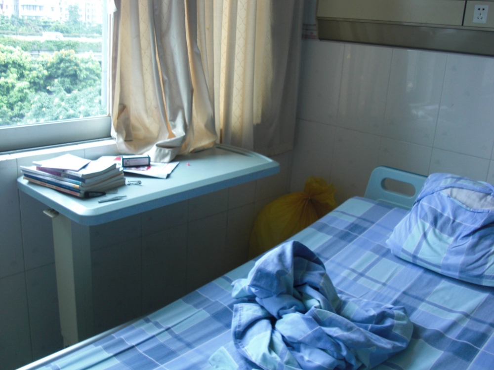 燕梅住的床位是医院里最简单也是最便宜的一种,一个床位50元一天,没有电视,但他们已经很满足,很感恩。为了能更好地照顾她,她妈妈也放下了手头的工作,上到广州照顾她