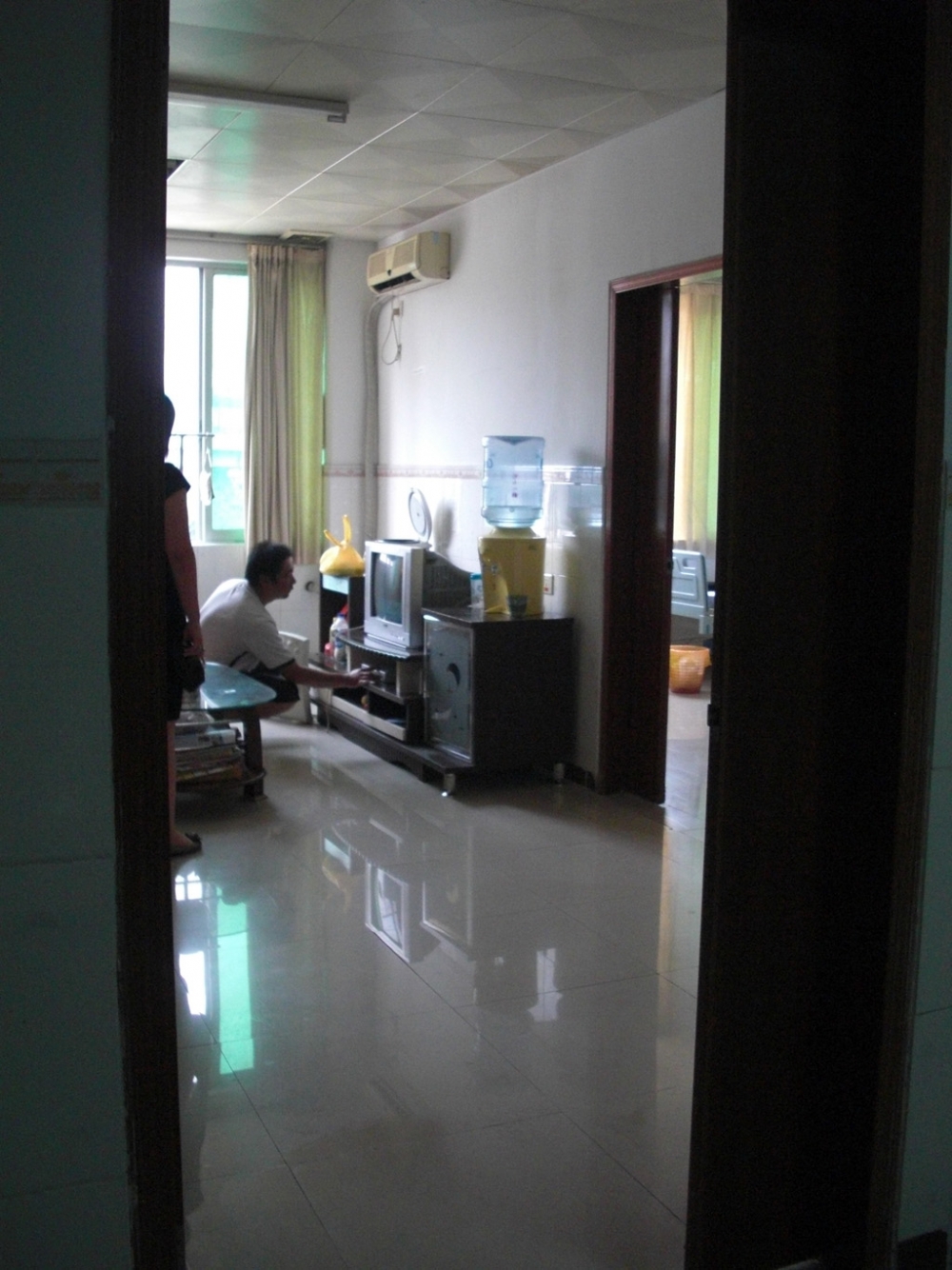 离开的时候,我们随手拍了张隔壁病房的状况,这是其他人住500元一天的病房,带有客厅和电视。
