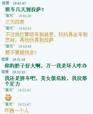 QUOTE(一条普通的鱼 @ 2010年04月30日 Friday, 06:57 PM) 这么漂亮,还独身走西藏,不怕人家强奸吗? [snapback]2958969[/snapback] 晕,别人还怕我,