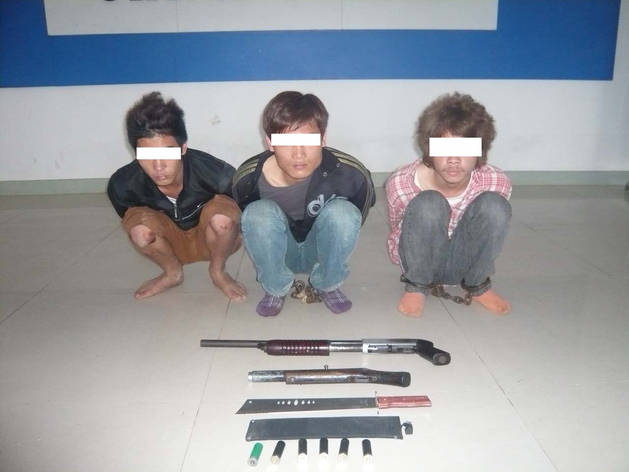 2010年4月份,电城镇城区连续发生三宗“女装五羊本田摩托车”被抢案,作案人为三名男青年,持来福枪,持刀骑红色男装125C摩托车。针对该案作案特点,电城派出所便衣伏击组采取巡逻伏击抓现行方法破案。2010年4月27日晚21时许,电城派出所巡逻伏击组在电城十字街口布网,一举抓获三名抢劫嫌疑人,分别叫张X友,系电城镇下海那尾山村人;吴X华、系电城镇莲头蚝担村人;黄X明,系电城镇下海那尾山村人,当场在张X友身上缴获自制散弹枪一支及子弹一发,从吴X华身上缴获开山刀一把及作案摩托车。经电城派出所与刑警二中队合力通宵审讯,三名嫌疑人全部交待四月份电城发生的三宗城区抢劫女装五羊本田摩托车案。后在该抢劫团伙的窝点电城东北环宿舍又缴获原装散弹枪一支,子弹五发。