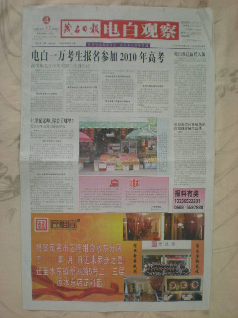 报纸好不好都是我们电白人的作品,我支持