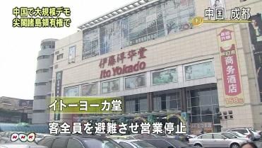 日本NHK电视台关于中国反日最新报道(图) 中国各地 日本に抗hするデモ10月16日 22r28分 中国各地で16日午後、尖wTuのI有丐颏幛挨盲迫毡兢丝棺hする大模なデモが起き、日系のス`パ`や日本食レストランでガラスが割られるなどの被害が出ました。 デモが起きたのは、中国四川省の成都、西省の西安、それに河南省の州の3つの都市です。このうち成都では、新A社通信によりますと日本rgの16日午後3rごろ、2000人以上の学生が中心街に集まり、「尖wTuを守れ」とか「日本と椁ā工胜嗓冉肖婴胜らデモ行Mを行ったということです。また、成都にある日系のス`パ`、イト`ヨ`カ堂のvS者によりますと、市内にある4店nのうち、中心部にある「1号店」でガラスが割られるなどの被害が出たということで、イト`ヨ`カ堂ではIい物客を全T外へ避yさせ、この店のIをすぐに停止したということです。一方西安では、新A社通信によりますと7000人以上の学生がデモ行Mし、「尖wTuは中国のI土だ」と主するとともに、日本u品を入しないように呼びかけたということです。日本大使^によりますと、西安市内にある日本人がU婴工肴毡玖侠淼辘钎ラスが割られるなどの被害が出ました。いずれの都市も夜には、デモの参加者はいなくなり、成都では警察のvS者が周xの道路を封iして警戒に当たっているということです。また、一Bのデモで日本人にけが人が出たという情螭先毪盲皮い胜い趣いΔ长趣扦埂=窕丐违钎猡稀⒏鞫际肖扦郅芡rに起きており、インタ`ネットなどを使って呼びかけられたものとみられますが、lが呼びかけたのかなど、しいことはわかっていません。日本と中国は、先月、尖wTu_で起きた中国のO船によるn突事件を受けてvSが化しましたが、日本の菅t理大臣と中国の温家宝首相が今月4日、ベルギ`で会したあとは、vS改善に向けて婴出していました。 中国各地で16日、尖wTuのI有丐颏幛挨盲迫毡兢丝棺hする大模なデモが起き、内部の成都にある日系のス`パ`では、正面玄vのガラスが割られるなどの被害が出ています。16日,在中国各地的尖角群岛领有权问题日本表示抗议的大规模发生了示威,内陆的成都的一家日企的超市,正面玄关的时态的经济损失。