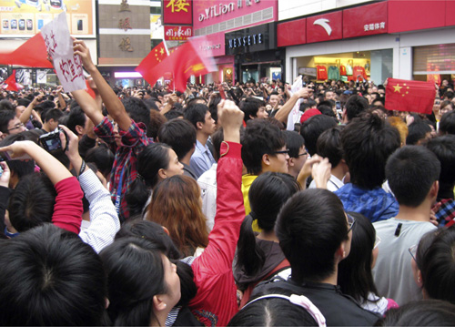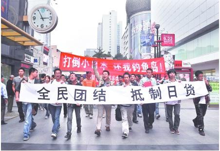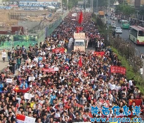 大 大力牛 学前班 注册 2009-10-21 消息 55 反馈评分 0 点数 0 2010-10-17 #38 今天在西安市爆发了继上海反日游行之后国内第二次大规模游行示威活动。游行以大学生为主力军。正逢周末,游行活动带动了一大批在职爱国知识分子。西安抗日游行10月16日14:00在大雁塔北广场集合并进行游行,路线是大雁塔北广场――雁塔西路――韦二街――长安中路――省图书馆――南门――钟楼。 据悉,这次西安抗日游行的口号为“打倒小日本,保护我钓鱼岛”等。西安抗日游行示威由大学生发起,今早14时许从西安大雁塔广场游行至钟楼的路线。沿途不断有人跟随加入游行队伍,大家情绪激昂,手持国旗,一部分人手举“坚决不要新干线”,“团结起来抵制日货”,“打倒日本人”“国家兴亡,匹夫有责”等标语。 据现场目击者称,西安抗日游行活动由两辆警车开路,后面和周围都有武警保护游行的秩序,以防现场失控,保护人民的安全。