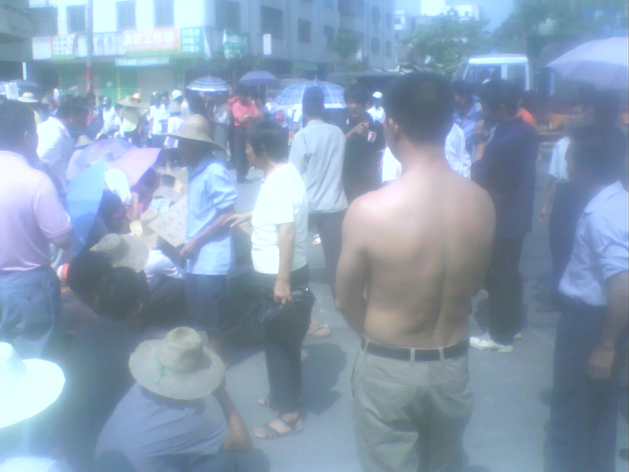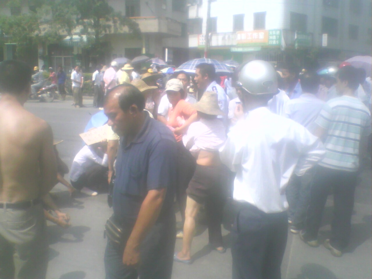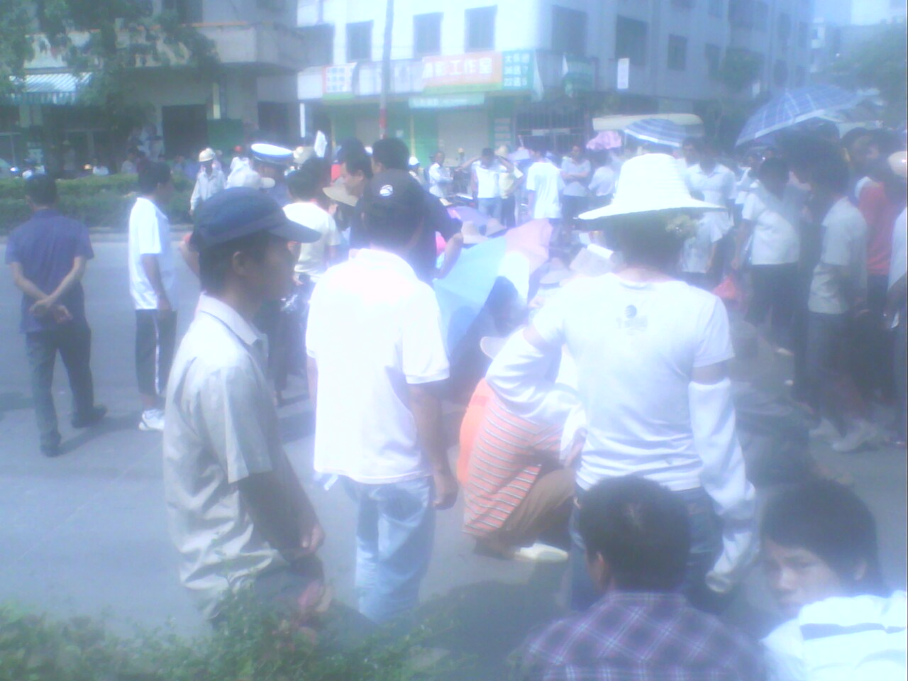 在别的地方,经常看到有人在政府门口,在电视台门口静坐、拉横幅抗议的,但是没见过有坐在马路中间的。。。。。。