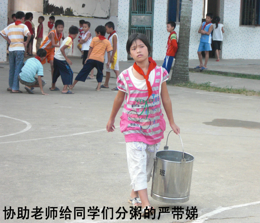 带娣很懂事,感恩学校免费提供给自己的早餐,常主动帮老师给同学们分粥_副本.JPG
