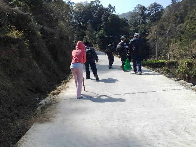 2、穿越森林茂密的小道,顺溪而行,清凉爽透肺,到一大草坡休息补充体能,集体合照。