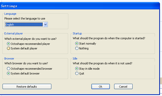 PS:此步是设定Octoshape 所用的播放器。