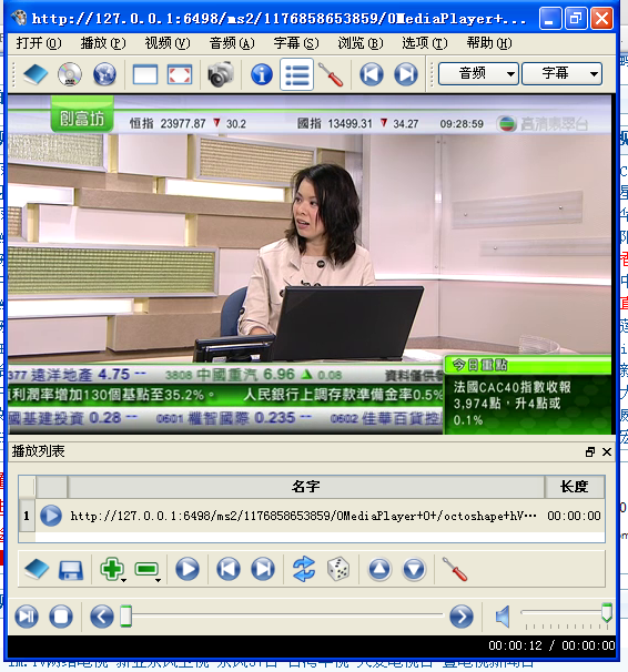 看我写那么多,事实上很简单。平时用只要先后打开Octoshape 和播放器,而播放地址可以保存,例如高清翡翠台是http://127.0.0.1:6498/ms2/1176858653859/0MediaPlayer+0+/octoshape+hVV+octolive.tvb.com+V+tvb.hk.hdjade.auto/tvbhkhdjadeauto 可以保持下来,直接双击播放