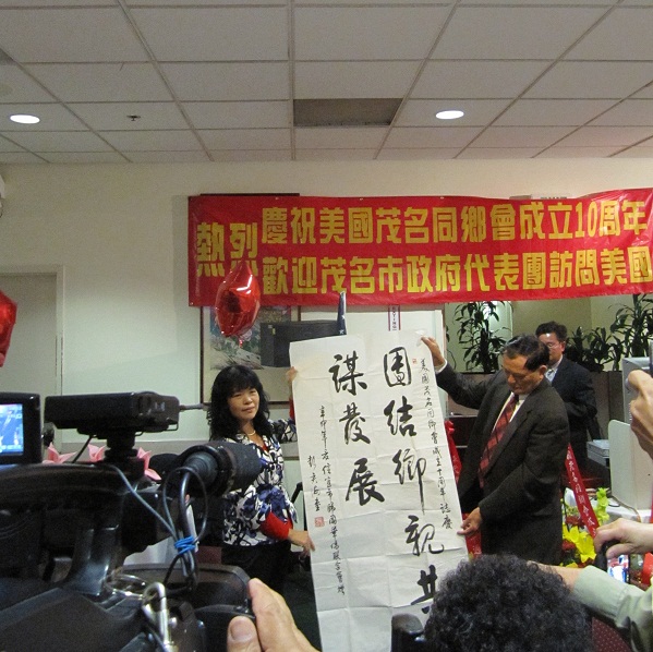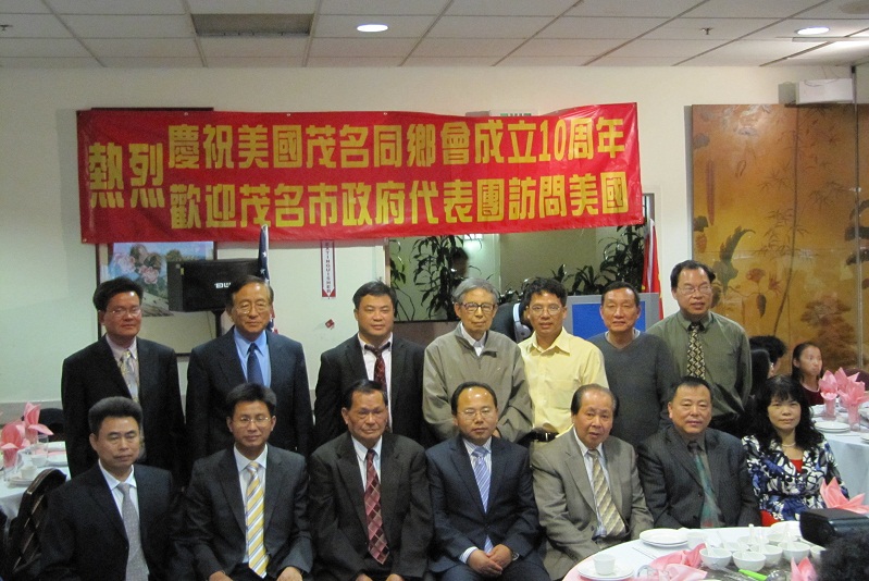 美国S界昨晚e行盛大庆祝茂名同乡会成立十周年晚会。除了我和论坛的Strong大哥,还有来自水东,沙院,小良和七迳的电白和茂港的同乡,其它大部分人士都是来自高州的宗亲。