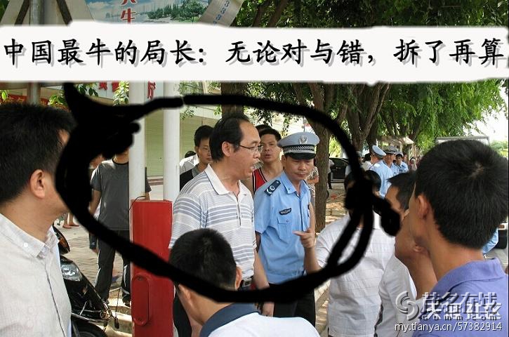 据闻,市公安局前局长倪振雄将公安大院内的一块空地低价卖给了开发商,有协议是开发成商品房后,按协议价卖给公安局的民警,甚至当时已经征求民警的建房意向,后来由于各种原因一直拖着没办成,直到倪振雄出事了,茂名房价大涨,开发商见利忘义,想抛开公安局单飞,但该地块位于公安局大院内,除了大院的入口,没有其它道路能抵达,开发商不按协议办,公安局肯定不会让其使用大院出入口的!! 于是开发商找到了对错哥,于是对错哥在某种驱使下就不管对错,开始强拆了!!!以上纯属路边人士推算!! 转自茂名论坛