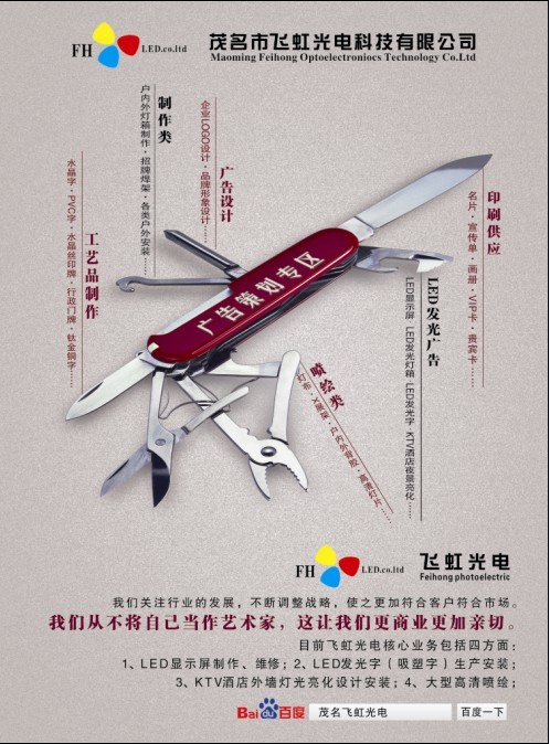 茂名市飞虹光电科技有限公司业务范围宣传单
