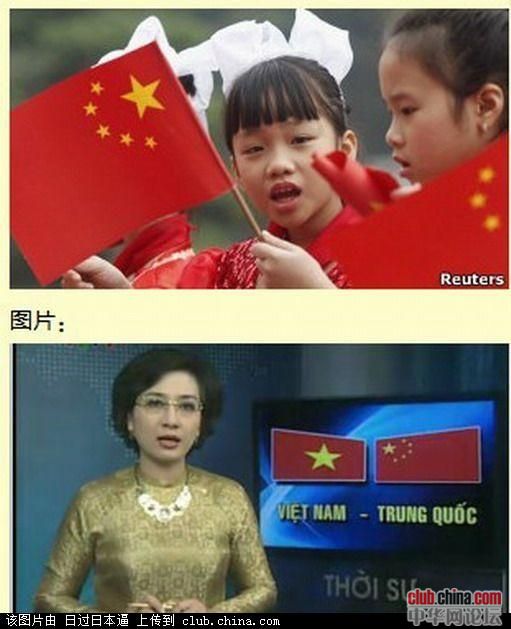 2011年10月中旬,越南中央电视台涉及中越关系的新闻节目中,在越南国旗边上,俨然出现了一面六星的中国国旗。这一制作错误激怒了许多越南人,他们认为在中国国旗上的频频失误,以这颗额外的小红星形式,显示了河内当局潜意识的希望把越南变成大中国的一部分。