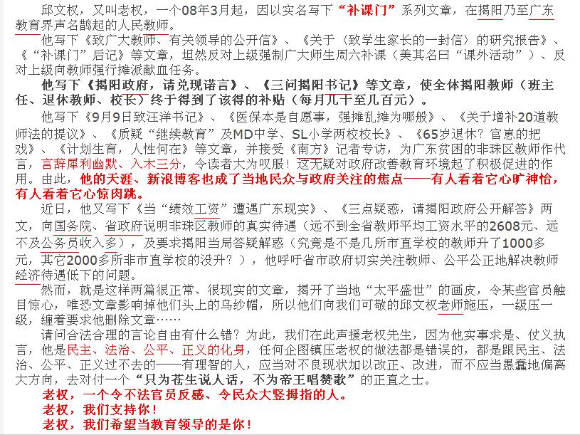 声援非珠区(揭阳)教师邱文权