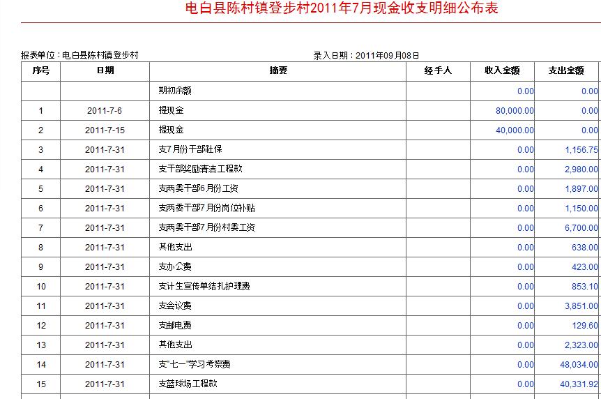 看了下自己村里的情况,特别关注了下财务公开!!看了“现金收支明细表”,有几个觉得好离谱的支出!!每个月支出中都有“环境卫生费”、“垃圾费”、“招待费”这些!!都是一年才回几次村里,难道村里有环卫工啦??每天安排了人清理垃圾??每个月都有客人来访??再看看其他村的财务公开,人家招待费也有,但就几百块,这个村子不上千就上万!!!!!!贴出来给大家看看,大家也可以上去看看自己村里状况![attachmentid=291821][attachmentid=291822][attachmentid=291823]