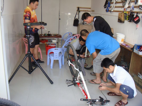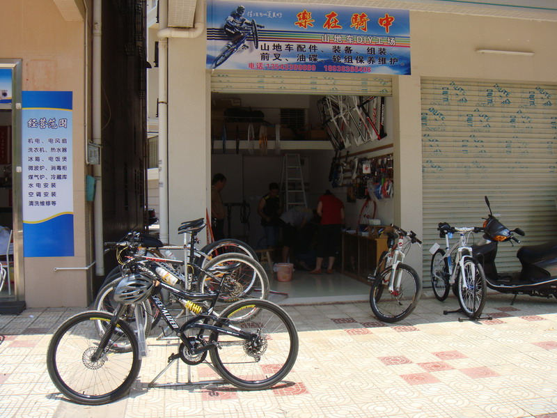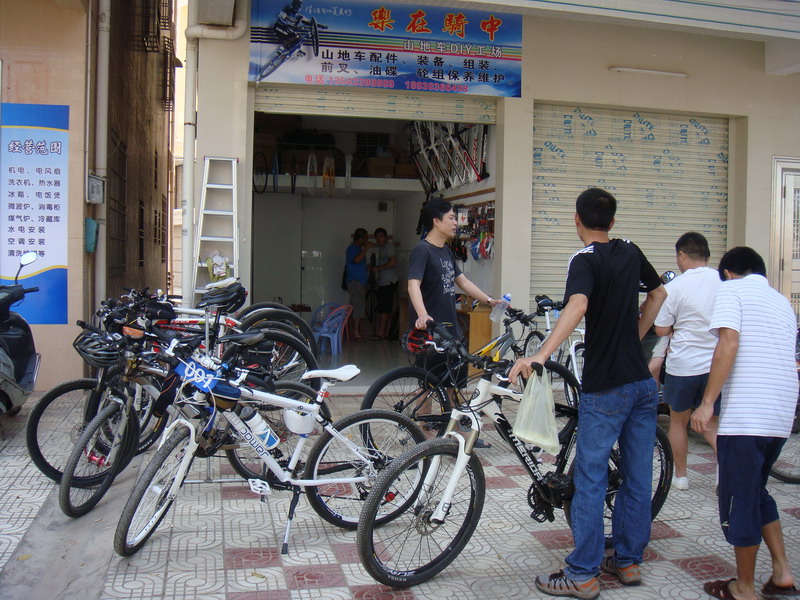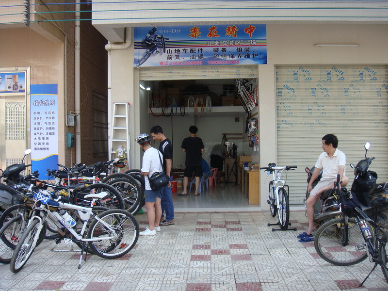 其实俱乐部这东西见仁见智吧,本想搞个自行车爱好者协会的,但是注个册天朝的手续最快要1年还得签n多的文件,最要命的是还得向zf交3-5万的手续费用,不协也罢(其实俱乐部也麻烦所以就不挂牌了)。早两三年前大家都有这个想法了但由于种种原因一直只是说说就过了。车友一直都是东西南北各自为营,无论夜骑锻炼、长途骑游、山道xc都像一盘散沙,缺少的是一块属于车友的可以交流可以联络感情可以凝聚那股力量的落脚点。随着队伍一天一天的壮大夜骑回来都挤到我家实在是挤不下了,都挤了3年了是时候该换换地方了。于是与几个车友合计后在海堤附近(主要环境适合骑车)租了个小铺面作为车友的落脚点起名为“乐在骑中”。居然地点铺面是租的灯光水动的总得要钱的,最好的办法就是低价卖点小配件,diy帮车友装车或帮车友维护下前叉、油刹、轮组等得以长久维持。大家可以凝聚在一起靠的是有共同的爱好,所以俱乐部还是以凝聚为主营利为辅的,希望车友可以理解。这几天大家把该有的维护保养工具、常用配件、零件都准备得差不多了,五一正式开门,当天骑自行车来的赠骑行小礼品一件,送完就没,欢迎骑友来品茶吹牛,俱乐部刚诞生还得望车友们的支持与爱护才得予更快的壮硕成长。(地图上的绿色‘起’字是俱乐部位置)